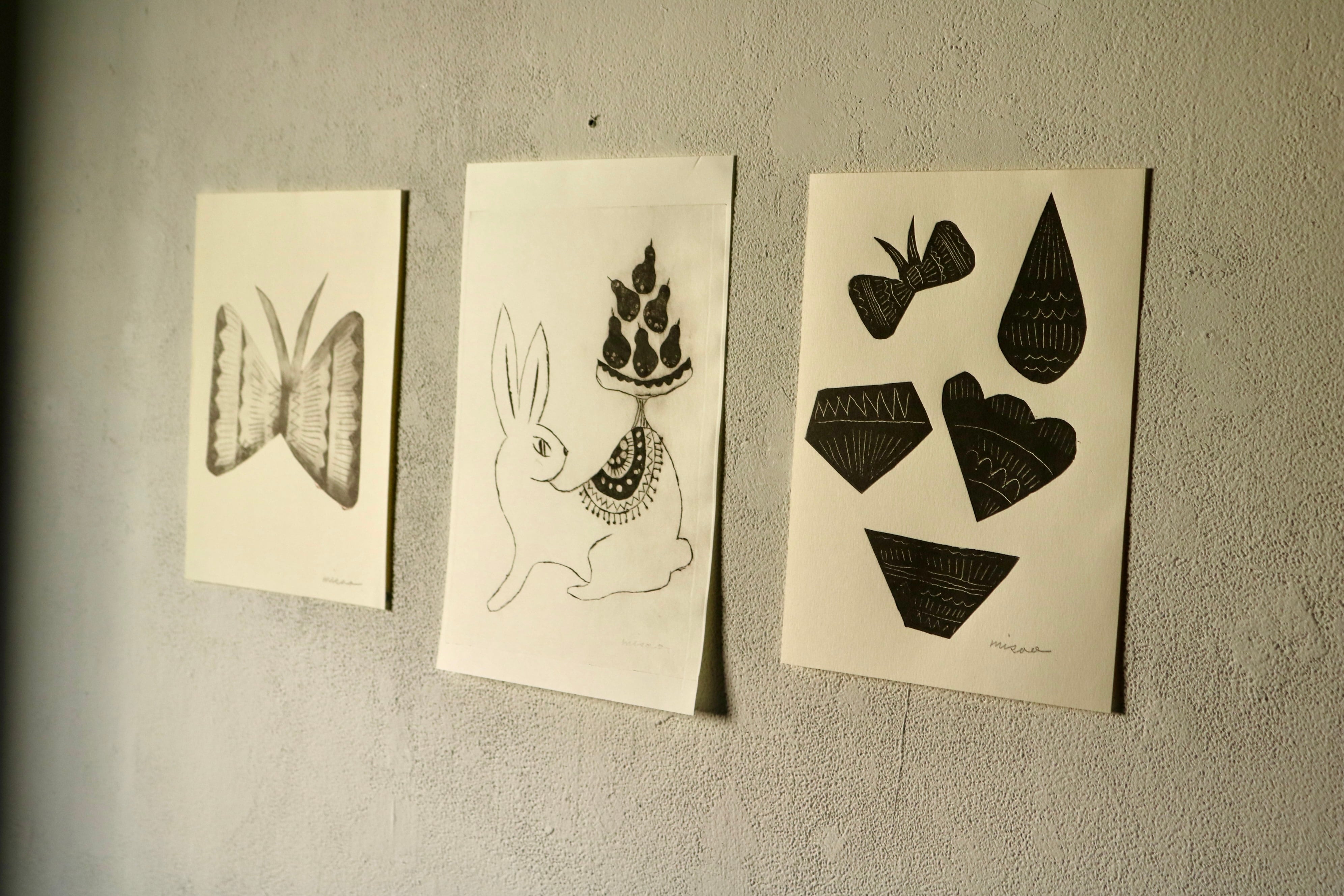 紙版画の特性上、みさをさんが描くイラストの柔らかな線が再現されているようです。