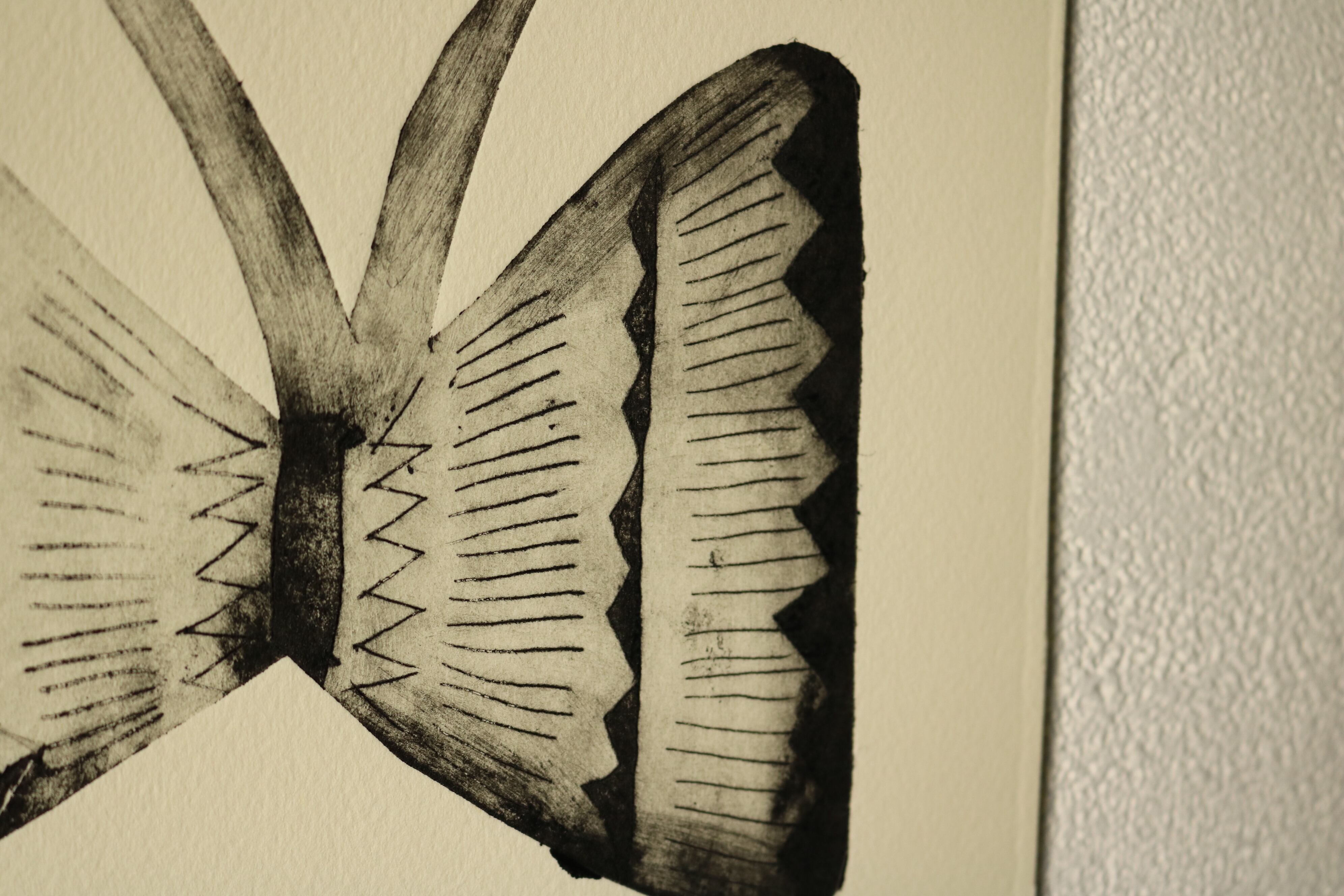 こばやしみさをさん/紙版画「ちょうちょ(黒)」